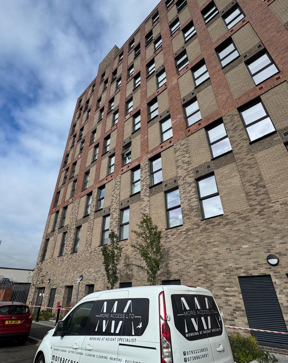 More Access Ltd provides professional high-level window cleaning for commercial properties and residential blocks, specialising in rope access and abseiling solutions. We help property and block managers maintain clean, presentable buildings where safety, access and compliance are critical.